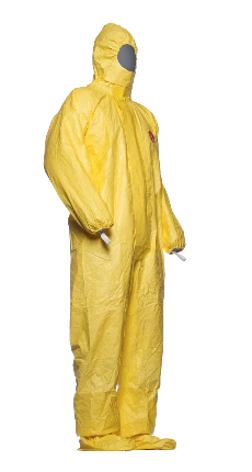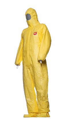 DuPont™ Tychem® 2000 C with socks. Hooded coverall with integrated socks to be worn inside shoes or boots, with additional knee-length boot flap. Available in bright yellow for high visibility and in sizes SM to 3X. Elasticated face, wrists, waist and ankles for an optimal fit, thumb loops prevent sleeves from riding up. Self-adhesive chin flap for tight seal of suit to face-masks.