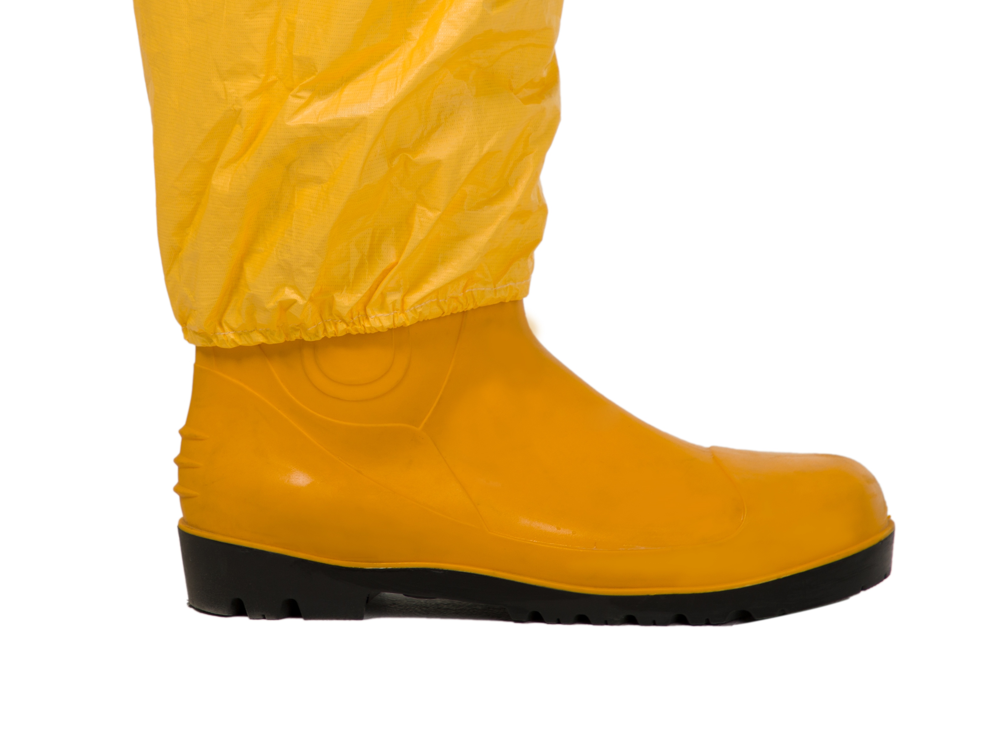 DuPont™ Tychem® 2000 C Boot cover model POBA. Fixation ties. Knee-length. Partially stitched, slip-retardant sole. Yellow.