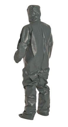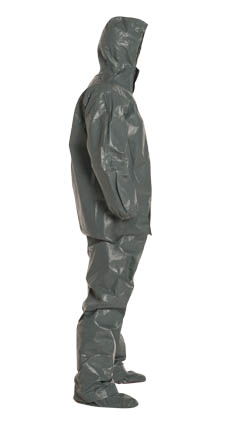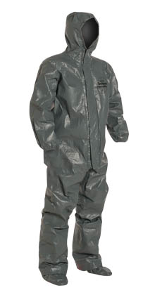 DuPont™ Tychem® 6000 FR Coverall. Certified to NFPA 1992, NFPA 2112, and the Category 2 Requirements of NFPA 70E. Respirator Fit, Drawstring Hood. Elastic Wrists. Attached Socks with Outer Boot Flaps. Double Storm Flap with Hook & Loop Closure. Taped Seams. Gray.